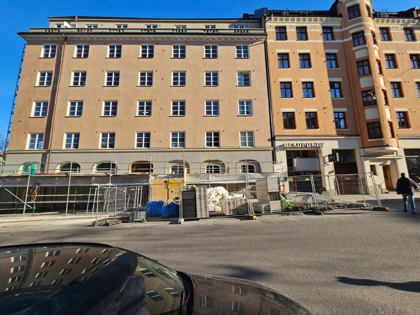 Omfattning: Hel nedknackning och omputsning av fasad. Nya fönsterbleck, renovering av smidesräcken.